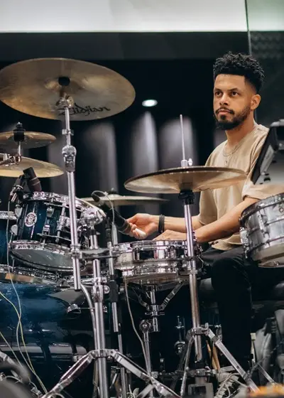 Baterista desde os 14 anos e com formação técnica em Música,
